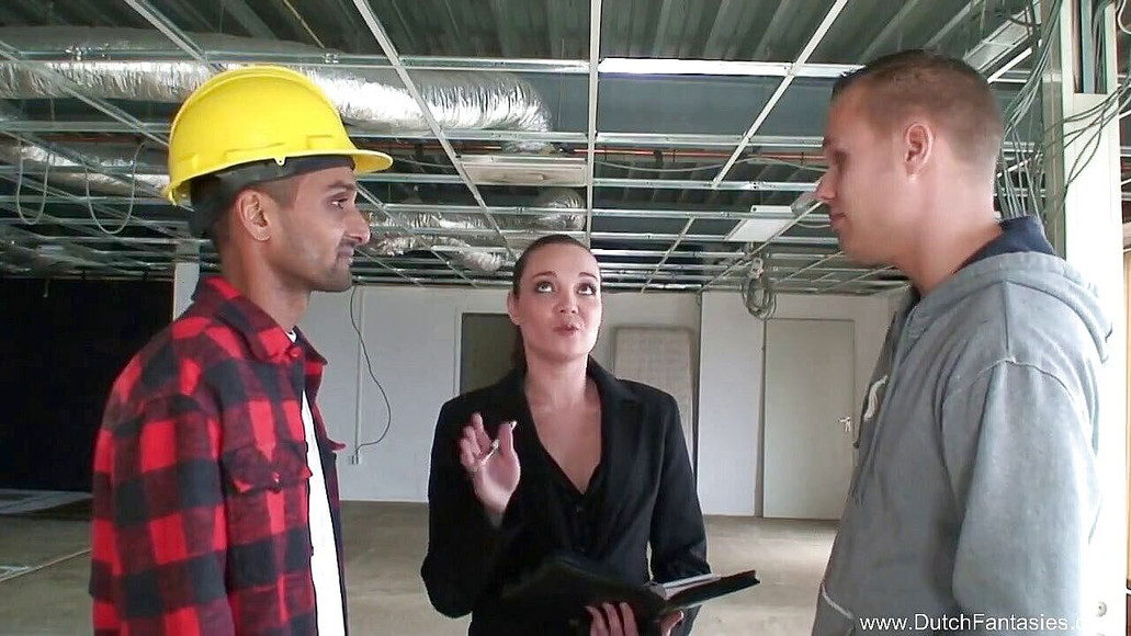 Horny babe is pleasing two big cocks before the cumshot.