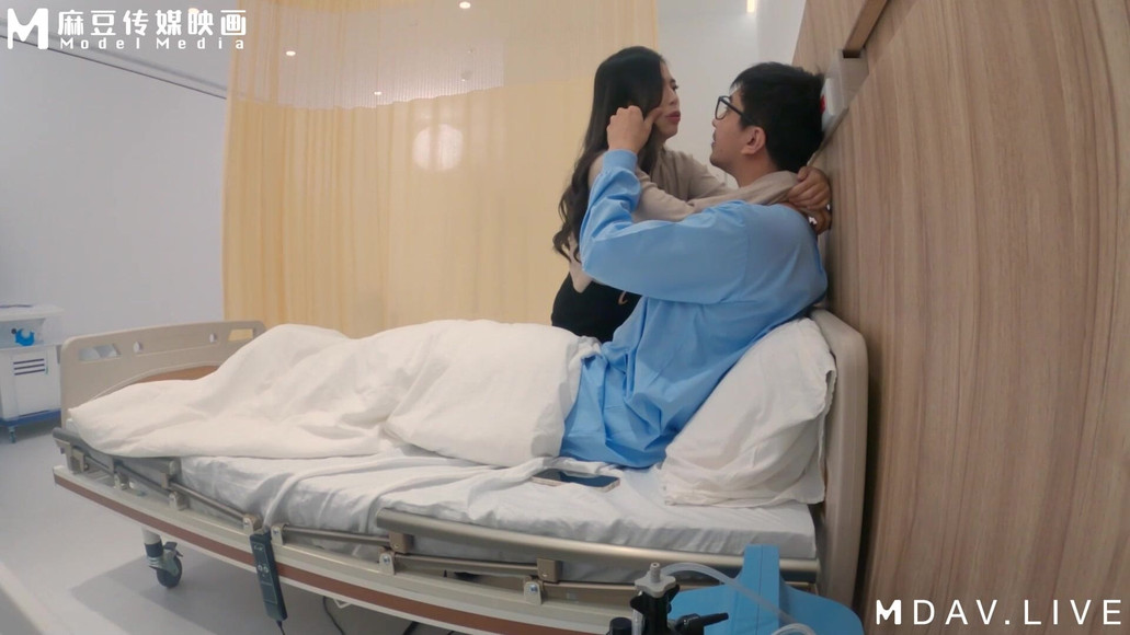 A beautiful woman came to the hospital to visit her boyfriend's illness, and she was afraid that her boyfriend would be and thirsty, so she helped her boyfriend squeeze semen on the hospital bed