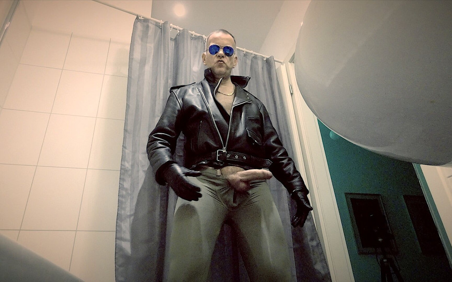 Leather Hunk is cruising in the nightly Berlin. At Home he starts to play in Leather Jacket with his extra large Bulge in front of the mirrors. His Leather Gloves make his big German Tool real hard. Hear his Moaning and Verbals. A lower Camera Angle gives you an hot view to the final Cum Shots of hot German Sperm. Enjoy this Production in Full HD of December 2020.